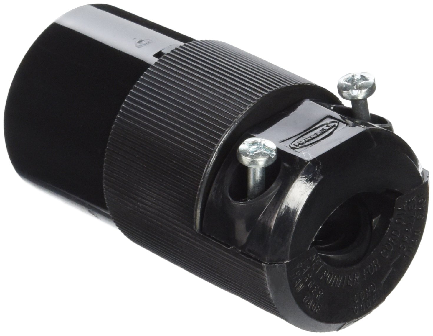 Straight Blade Devices, Female Connector Body, Insulgrip Heavy Duty, Industrial/Commercial Grade, Straight, 2-Pole 3-Wire Grounding g, 125V, 15A, 5-15R, Black, Single Pack, Extra Large Cord Clamp.